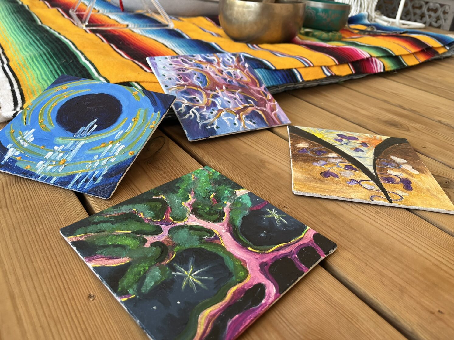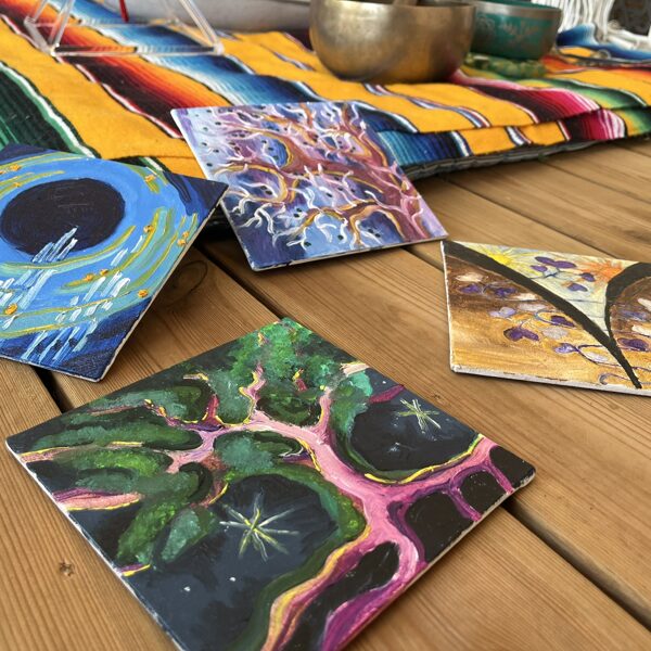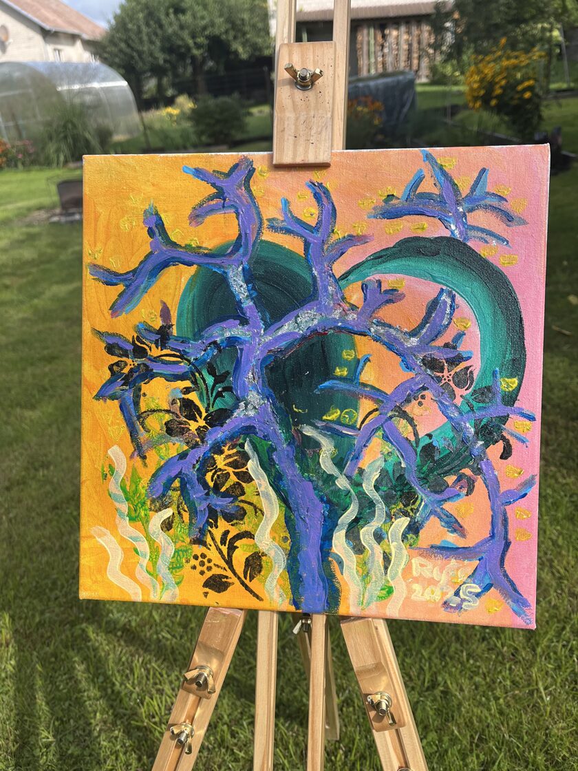 Intuityvi vidinio pasaulio išraiška per akrilinę tapybą ant drobės. Tai tapyba be paveiksliuko, be pasiruošto vaizdinio mintyse - taip kaip veda ranka, koks kyla vaizdinys, kokių norisi spalvų tą akimirką. Pagal pajautimą.
